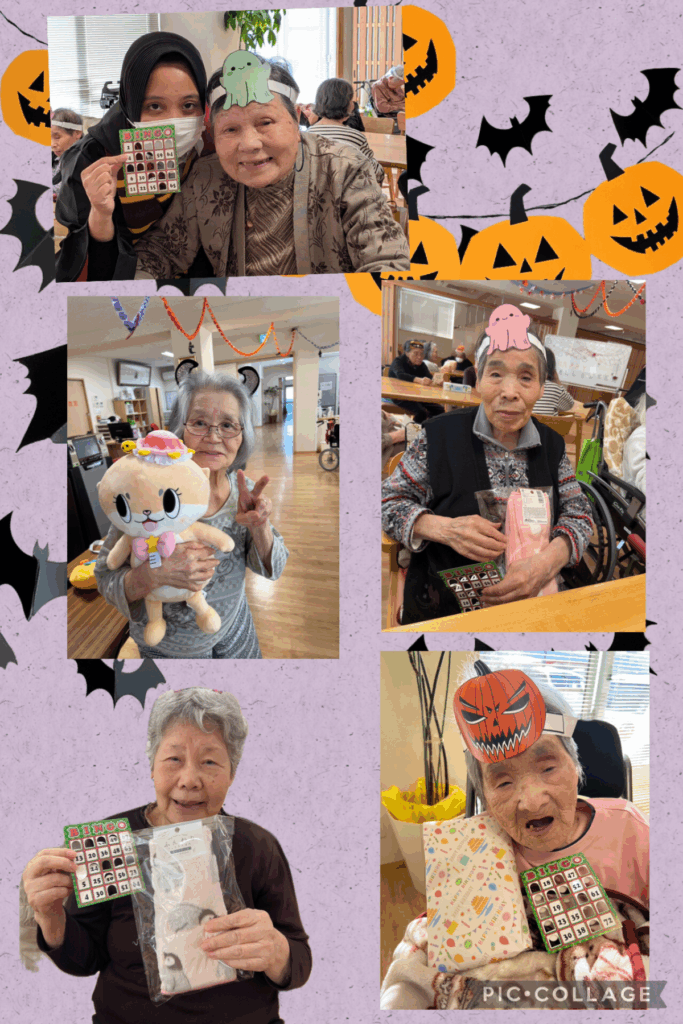 前日からハロウィーン用の飾りつけや、利用者様のハロウィーン👻のカチューシャを作り、当日は職員が仮装🥸をしビンゴ大会をしました。