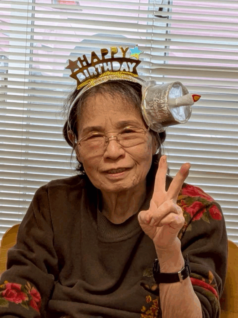 お誕生日のパーティーグッズをつけて照れくさそうに微笑んでいただきました😁