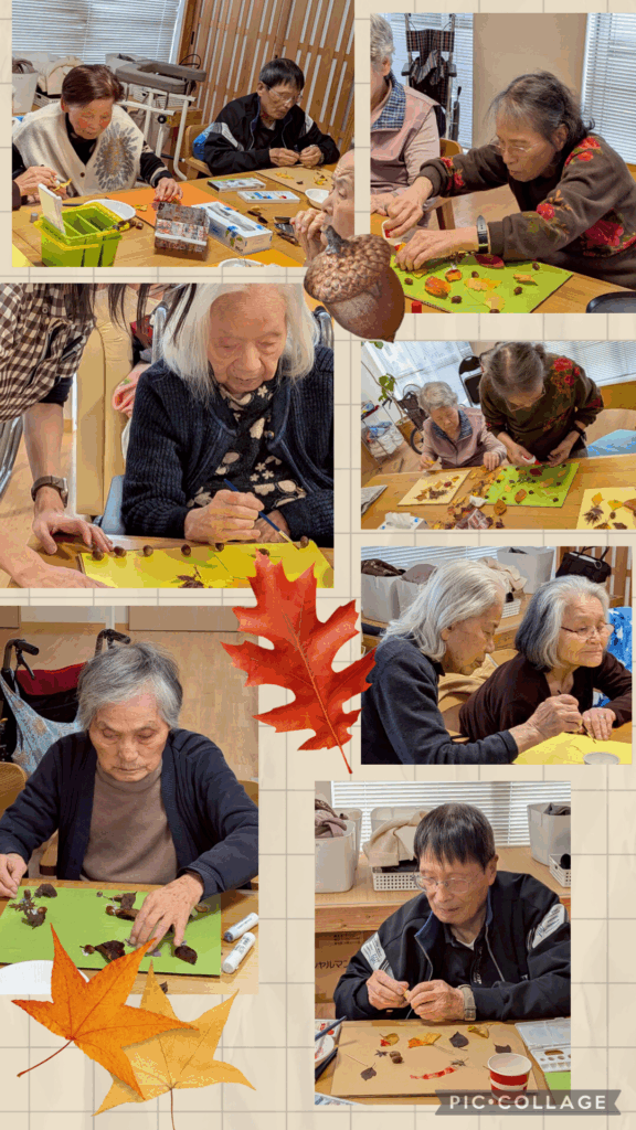 今月2回目のレクリエーションは秋の紅葉の葉🍂を使い、秋の風景を作っていただきました☺️✨
