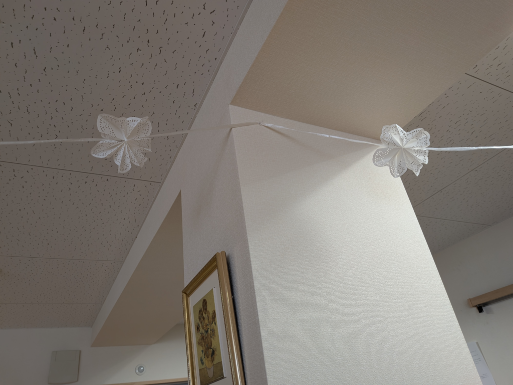 1階コルクボードには、スタッフのTさんが利用者の方々と梅の花を作ってくれました。