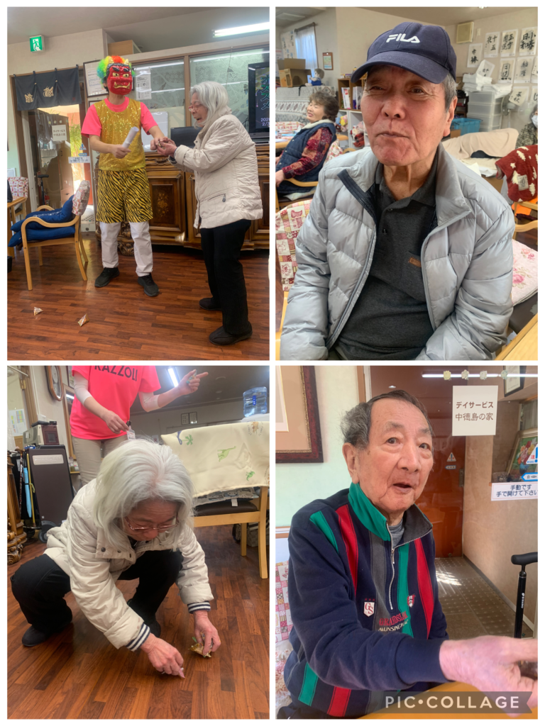 2026/02/06 中徳島の家 デイサービス中徳島の家 節分🌟✨🌟 デイサービス中徳島の家にも、細くて派手な鬼がやってきました😊 ご利用者様は、 「鬼は外!福は内!」 の掛け声と共に、豆をまいてくださいました。 一生懸命に豆を払って下さるK様❤️ありがとうございました。 今年もしっかりと豆をまき悪いものを祓ったので、一年間健康に過ごせると思います☆ ←一覧へ戻る→